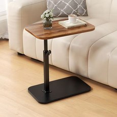 오브민 높이조절 사이드 쇼파 침대 이동식 노트북 테이블, 우드