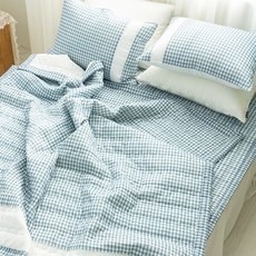 더블유에스컴퍼니 아레나 시원한 깅엄체크 시어서커 여름 이불, 블루