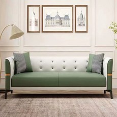 소파 3인용 가죽 소파 쿠션 포함 방문설치, D. 우지 그린 문 섀도우 화이트