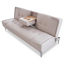 (15조한정 추가할인쿠폰) 에보니아 리도 패브릭룩 방수가죽 3인용 폴딩 컵홀더 소파베드 쇼파베드, 원목다리_PU아이보리