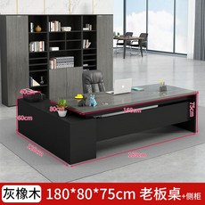 임원용 책상 대표이사 사무용 테이블 사장 중역 원장 사장용, 그레이 오크(180x80)+사이드 캐비닛